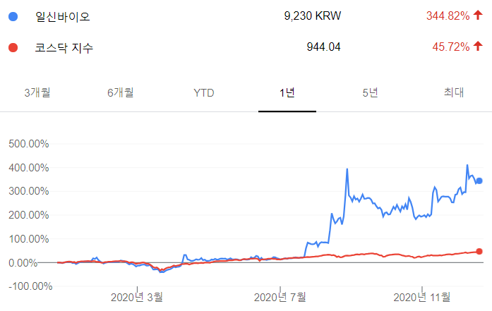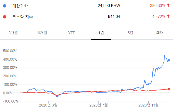 역시나 그래프를 보아도 확실히 독감백신때로부터 가격상승이 이루어져왔음을 알 수 있습니다. 11월 화이자 백신 발표 이후에도 꾸준히 상승세를 이어오는 것이 인상적입니다.👀