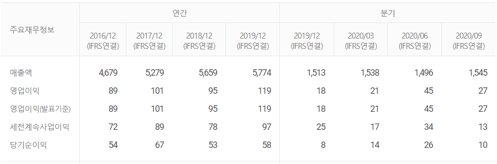 전반적으로 나쁘지 않은 재무상태와 밸류에이션 지표를 갖고 있습니다. 물론 코로나 백신 양산 발표 이후로 그래프상 꽤나 많이 오른 것이 보입니다만, 차후 백신 운송과 관련한 이슈가 있을 때 가장 먼저 체크해야할 콜드체인 관련주가 되겠습니다.😊