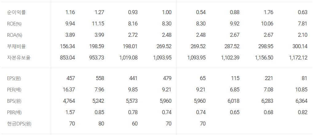 전반적인 운송 기업들의 부채비율이 높은 것은 어쩔 수 없나봅니다. 다만 PER이 상당히 괜찮아서 마찬가지 콜드체인 운송 관련주에 관심있으시면 나쁘지 않은 투자처라 생각됩니다.🙌
