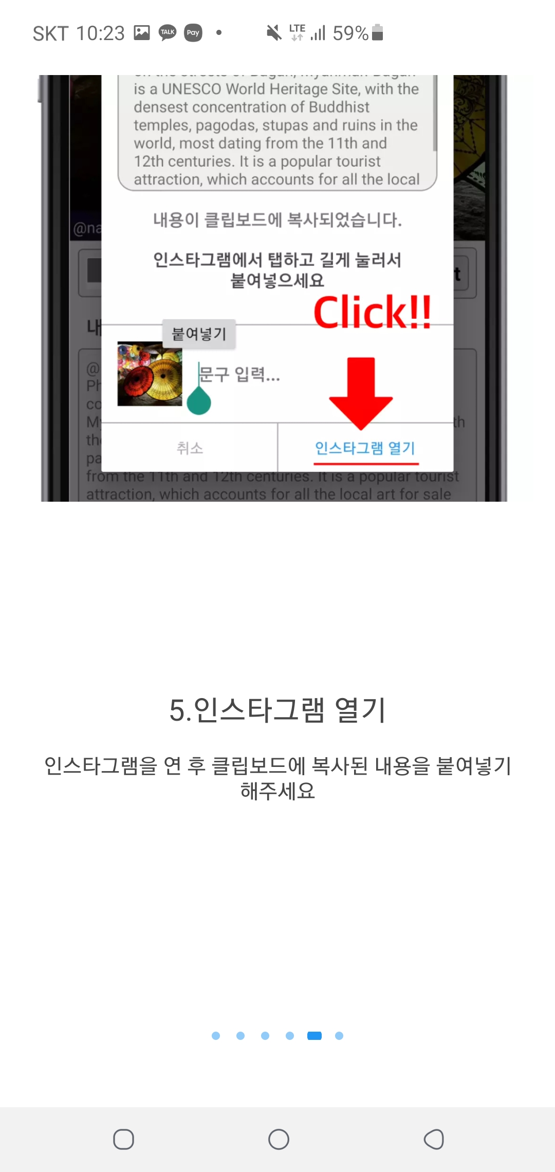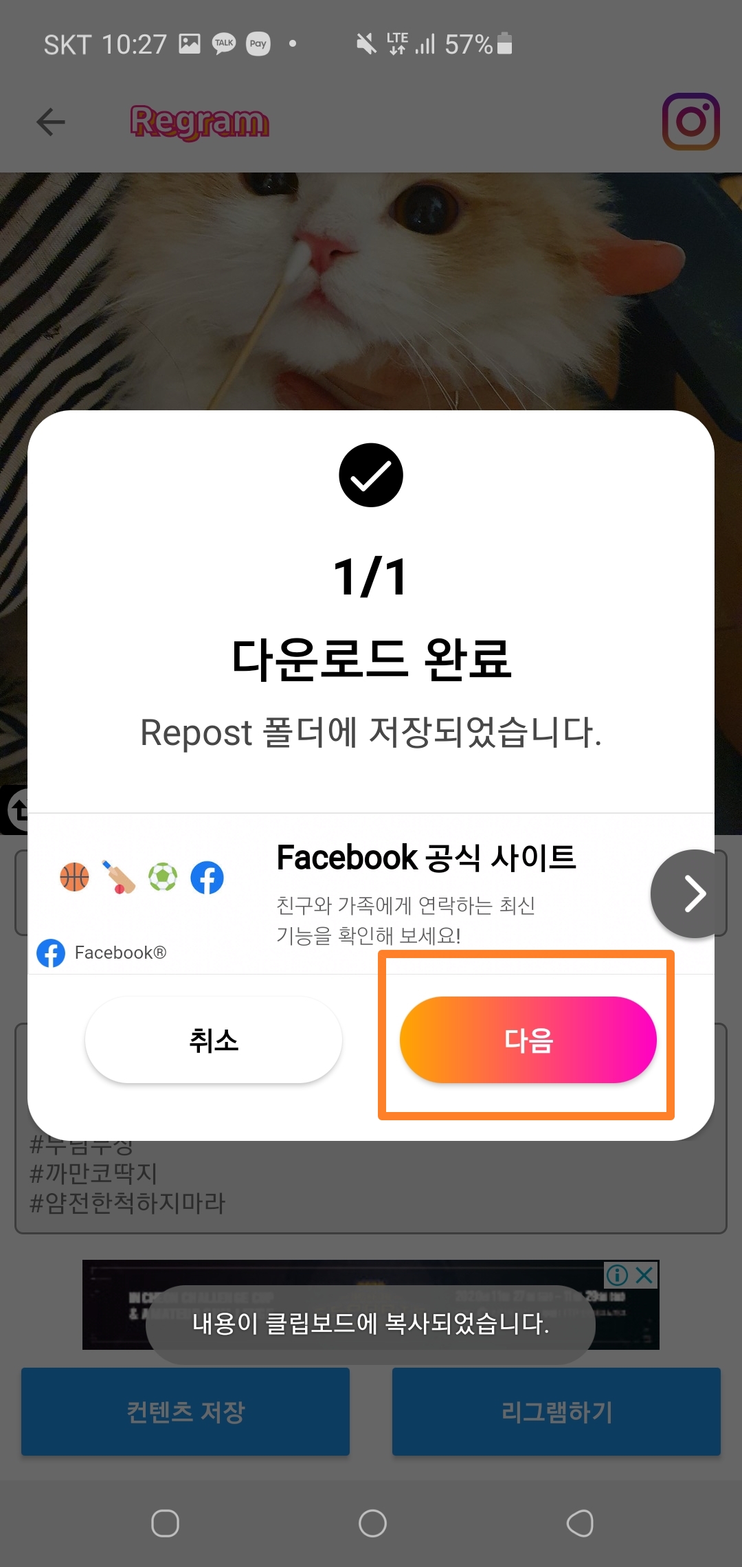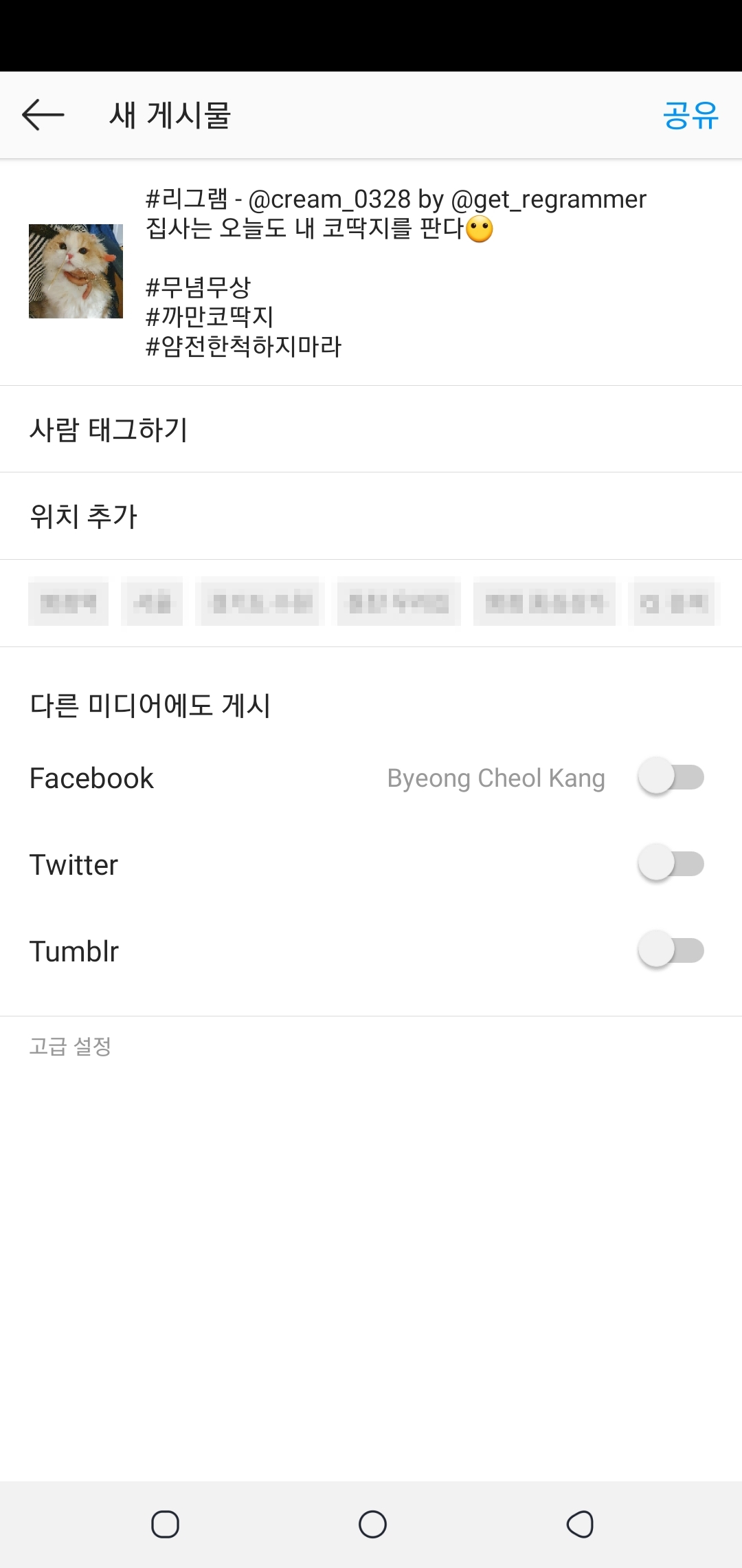 그 다음 공유를 해주시면 리그램이 완료되겠습니다 🙂