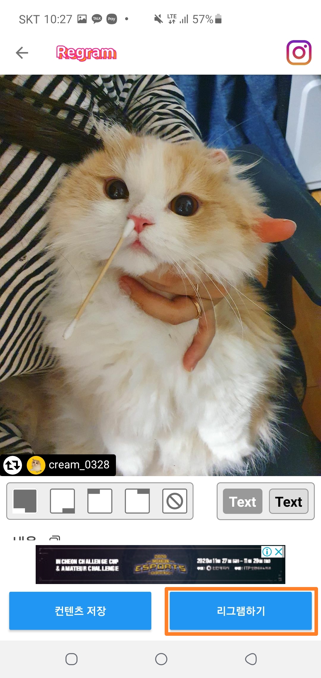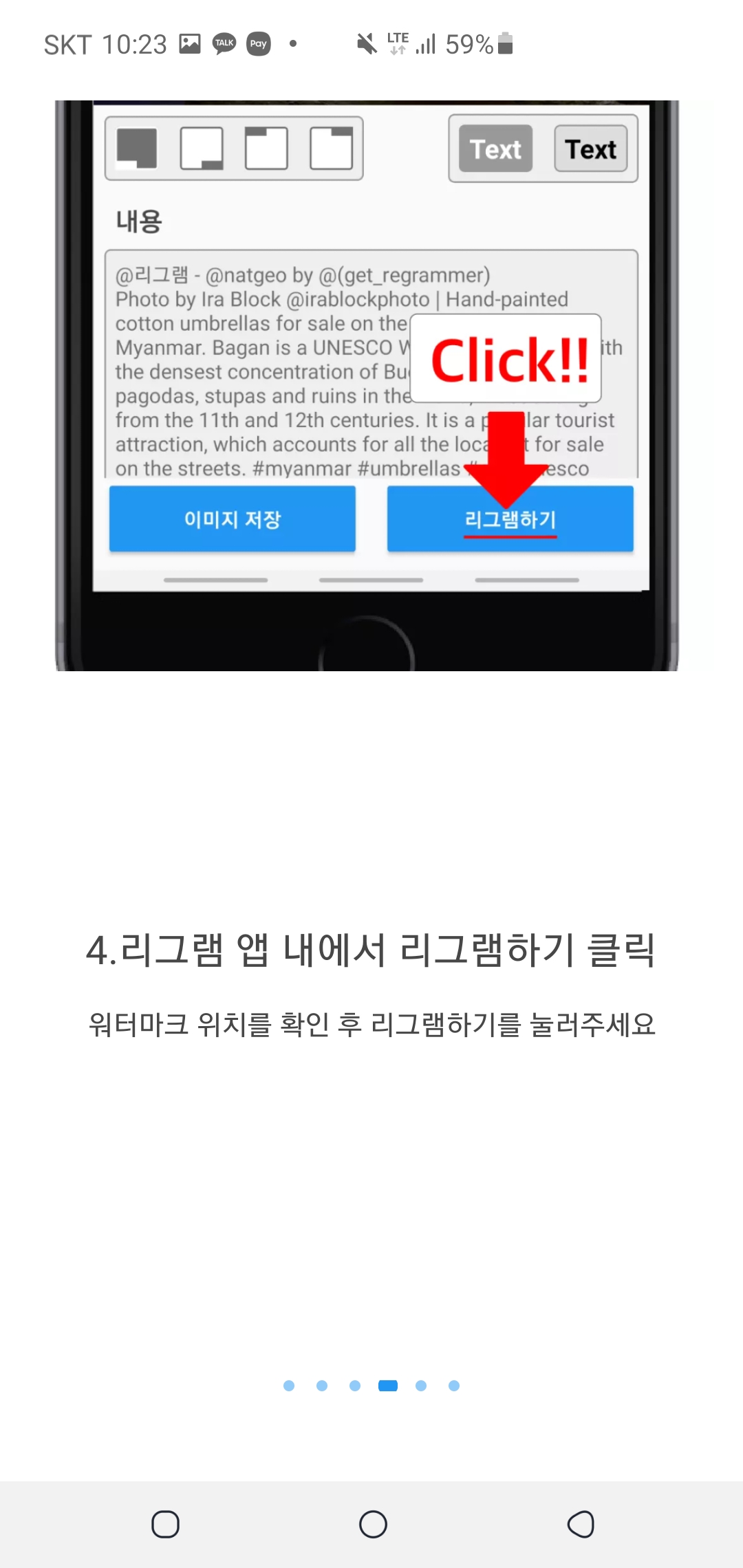 6. '리그램' 게시물 게시하기!