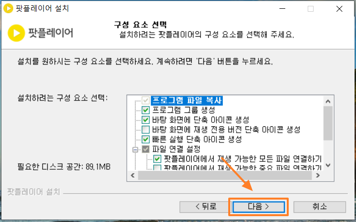 3. 팟플레이어 다운로드 구성요소 선택에서 잊지말고 선택해제해주어야 되는 항목들이 있습니다!